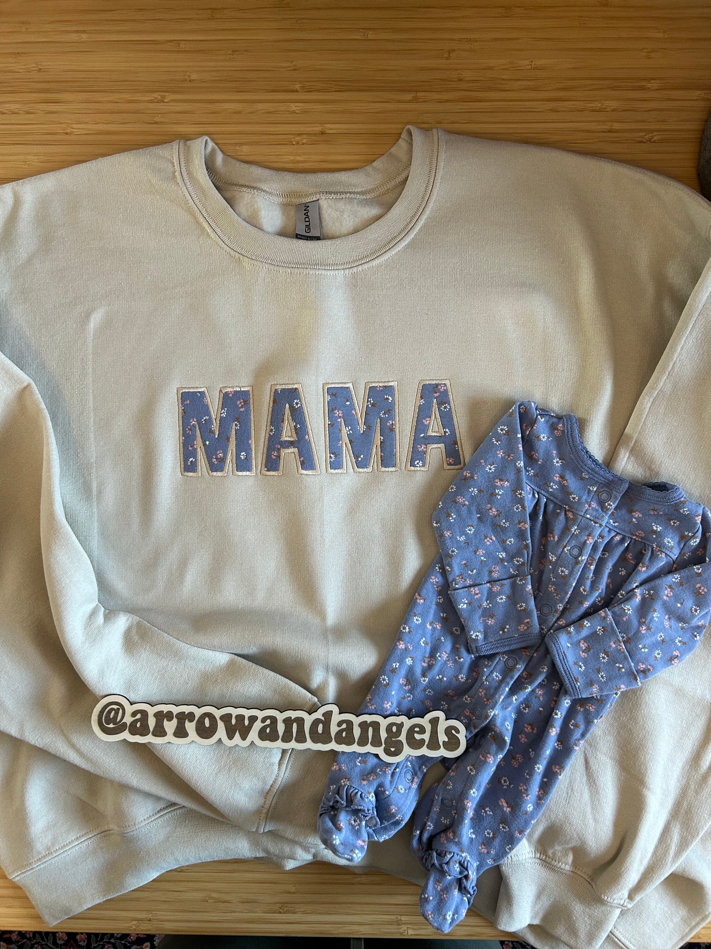 Mama Keepsake Embroidered crews are made to order by Arrow and Angels.